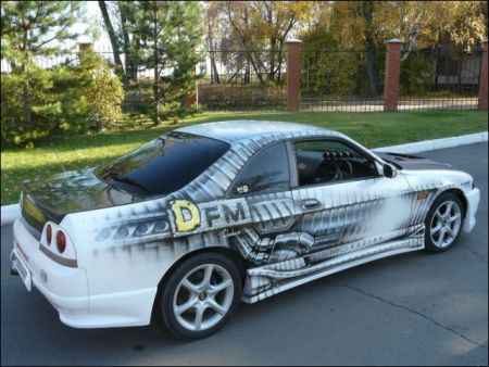 Акция «ТатуДИаж» на «DFM Барнаул» завершилась красиво. 1 октября машина победителя предстала перед нами во всей своей красе. Белый Nissan Skyline теперь стал практически эмблемой и знаком качества барнаульской tattoo-аэрографии.