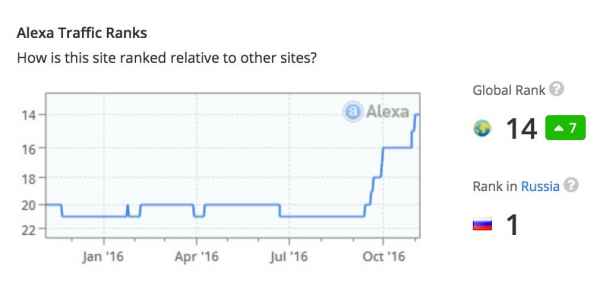 Рейтинг Alexa формируется на основе средней ежедневной посещаемости и количества просмотренных страниц за последний месяц. «Сайт с наивысшей комбинацией посетителей и просмотров страниц занимает первое место», — говорится в описании рейтинга.